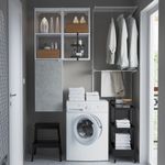 Эту комбинацию также можно использовать в зоне стирки. Под открытым каркасом хватит места для моющих средств или даже стиральной машины.