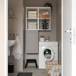 Эту комбинацию также можно использовать в зоне стирки. Под открытым каркасом хватит места для моющих средств или даже стиральной машины.
