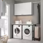 Здесь есть все необходимое для сортировки, складывания и сушки белья, а также удобное решение для хранения и специальное место для стиральной машины.