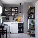 Открытый навесной каркас позволяет легко рассмотреть, что хранится внутри, и достать банки, бутылки и другие часто используемые предметы.