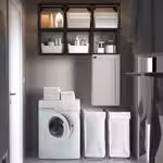 Также можно добавить рейлинг с крючками, чтобы повесить постиранное белье.