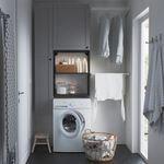 Если решения для хранения закреплены на стене, у вас освобождается место на полу для стиральной машины и корзины для белья.