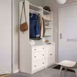Используйте крючки СКОГСВИКЕН, чтобы на боковой поверхности шкафа можно было повесить сумки, банные халаты и аксессуары.