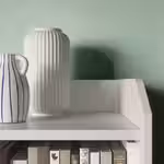 Выразительная верхняя полка является общей чертой всей мебели серии ХАУГА и подчеркивает ее традиционный стиль.