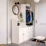 Используйте крючки СКОГСВИКЕН, чтобы на боковой поверхности шкафа можно было повесить сумки, банные халаты и аксессуары.