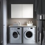 Эту столешницу можно использовать в помещениях с повышенной влажностью, что позволяет задействовать это решение при обустройстве зоны прачечной в вашей ванной.