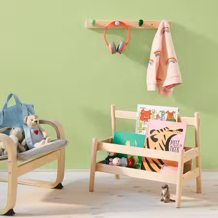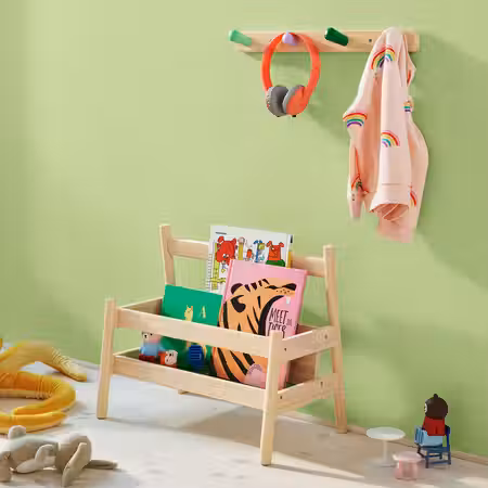Высота этой подставки позволяет ребенку самостоятельно доставать свои книги.