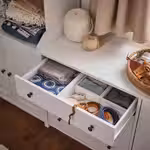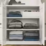 Можно использовать в спальне или любой другой комнате, как самостоятельный предметов мебели или в сочетании с другими товарами из серии ХАУГА. В эту широкую комбинацию поместится много вещей, а на столешницу можно поставить лампу или предметы