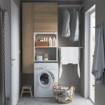 Если решения для хранения закреплены на стене, у вас освобождается место на полу для стиральной машины и корзины для белья.