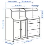 Можно использовать в спальне или любой другой комнате, как самостоятельный предмет мебели или в сочетании с другими товарами из серии ХАУГА. В эту широкую комбинацию поместится много вещей, а на столешницу можно поставить лампу или предметы