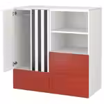 Комбинация для хранения изготовлена с учетом роста и моторных навыков маленького ребенка, поэтому он легко сможет самостоятельно доставать свою одежду, книги и игрушки.
