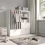 Комбинация для хранения изготовлена с учетом роста и моторных навыков маленького ребенка, поэтому он легко сможет самостоятельно доставать свою одежду, книги и игрушки.