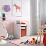 Расположите модули для хранения на удобной для ребенка высоте, и он сможет самостоятельно достать нужную вещь и навести порядок.