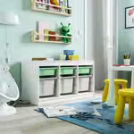 Расположите модули для хранения на удобной для ребенка высоте, и он сможет самостоятельно достать нужную вещь и навести порядок.