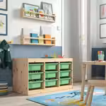 Расположите модули для хранения на удобной для ребенка высоте, и он сможет самостоятельно достать нужную вещь и навести порядок.