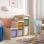 Расположите модули для хранения на удобной для ребенка высоте, и он сможет самостоятельно достать нужную вещь и навести порядок.