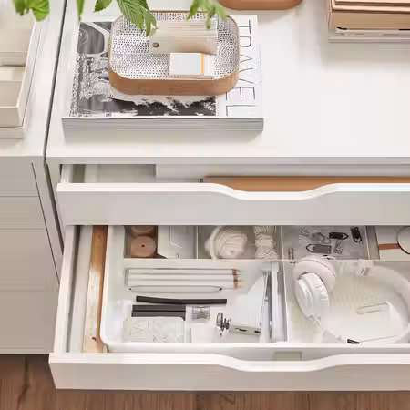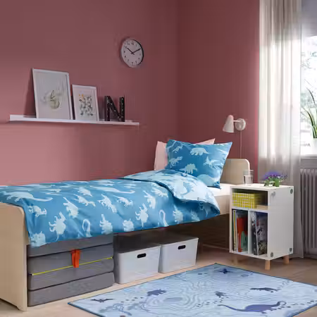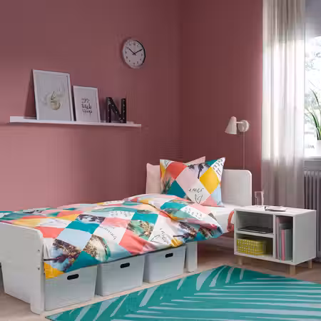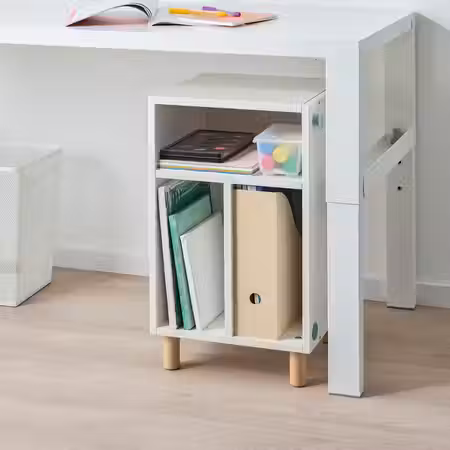 Этот компактный и доступный по цене предмет мебели удобно поставить у кровати. По мере взросления ребенка его можно будет использовать по-разному — сначала как прикроватную тумбу, а затем как модуль для хранения рядом с письменным столом.