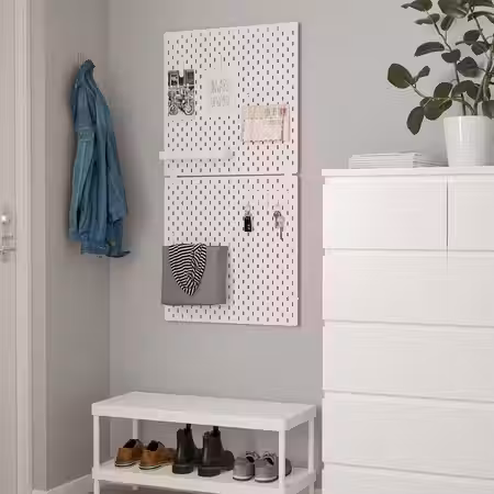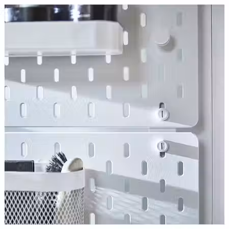Эти соединители позволяют скрепить друг с другом две настенные панели СКОДИС, чтобы повесить их на стену или на боковую панель гардероба.