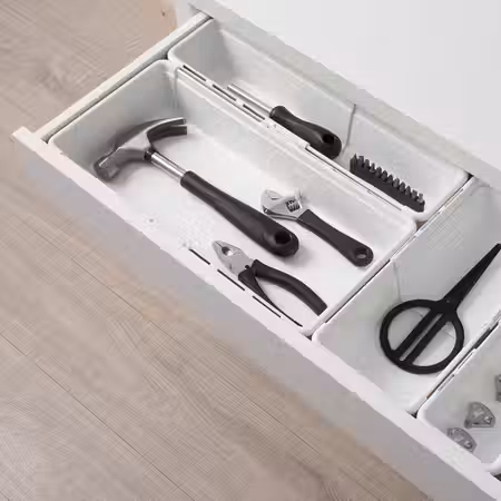 В каркасе подготовлены несколько пазов, в которые вы можете установить контейнеры и полки и в любой момент при необходимости изменить их положение.