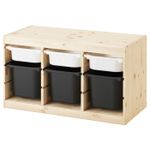 Комбинация для/хранения+контейнеры, светлая беленая сосна белый, черный 94x44x52 см IKEA ТРУФАСТ включает в себя следующие материалы: