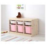 Комбинация для/хранения+контейнеры, светлая беленая сосна белый, розовый 94x44x52 см IKEA ТРУФАСТ включает в себя следующие материалы: