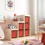Расположите модули для хранения на удобной для ребенка высоте, и он сможет самостоятельно достать нужную вещь и навести порядок.