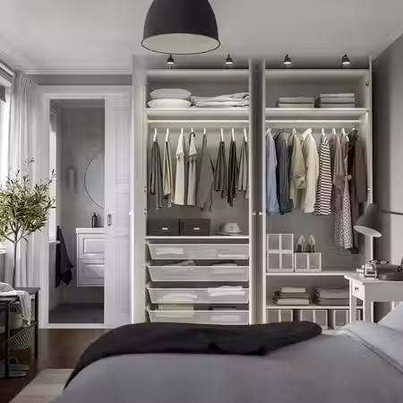 Установите эту регулируемую полку в каркас гардероба ПАКС туда, где она вам нужнее.