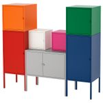 Особенности «ЛИКСГУЛЬТ Комбинация для хранения - красный, оранжевый, серый розовый-белый/синий-зеленый 130x117 см» заявленные производителем IKЕА: