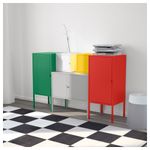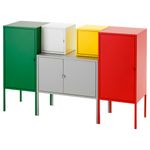 Яркая комбинация для хранения вещей разного размера. Важные документы, счета и письма можно хранить в дверце шкафчика, оснащенной специальным держателем. Шкафчики 35×60 см и 60×35 см штабелируются, но не крепятся к стене. Ширина: 130 см.