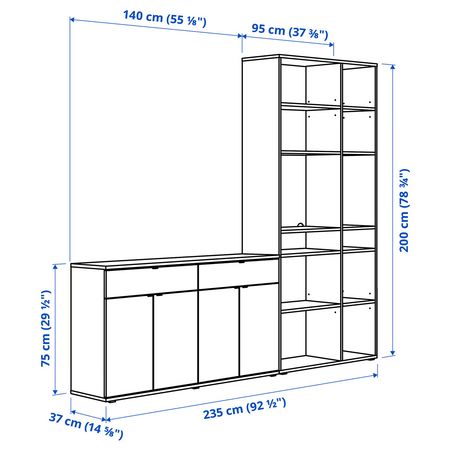 VIHALS 594.406.10 Комбинация для хранения/под ТВ, белый 337x37x200 см