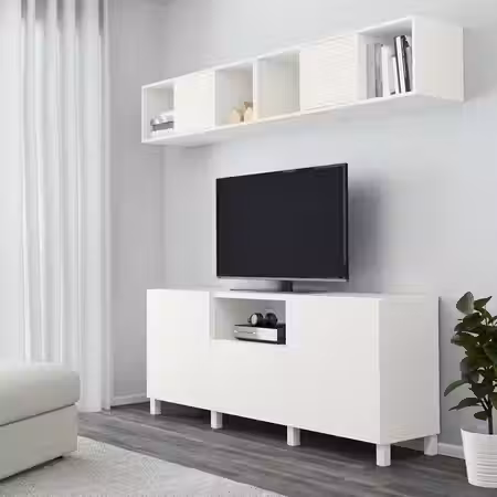 Тумба для телевизора БЕСТО может использоваться для телевизора и всех необходимых гаджетов.