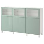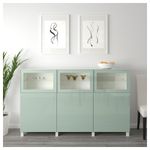 Вы можете выбрать нажимной механизм или устройство для плавного закрывания. Закаленное стекло защищает верхнюю панель стеллажа БЕСТО и придает ему новый облик. Ножки придают комбинации БЕСТО более легкий вид, поднимая модули на полом.