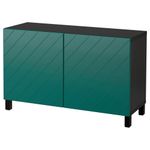Комбинация для хранения с дверцами, черно-коричневый, Халлставик сине-зеленый (120x40x74 см)