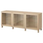 Комбинация для хранения с дверцами, под беленый дуб/синдвик/стуббарп под беленый дуб, прозрачное стелко 180x42x74 см IKEA BESTÅ БЕСТО включает в себя следующие материалы: