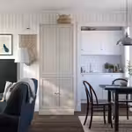 Скандинавский дизайн с его простыми лаконичными линиями позволяет легко комбинировать шкаф с мебелью в других стилях.