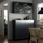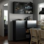 Особенности «BESTÅ БЕСТО Комбинация для хранения с дверцами, ящиками - черно-коричневый РИКСВИК/стуббарп/под брашированное темное олово прозрачное стекло 120x42x213 см» заявленные производителем IKЕА: