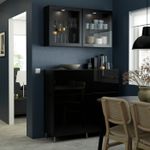 Особенности «BESTÅ БЕСТО Комбинация для хранения с дверцами, ящиками - черно-коричневый/СЕЛЬСВИКЕН/осарп глянцевый, черный прозрачное стекло 120x42x213 см» заявленные производителем IKЕА: