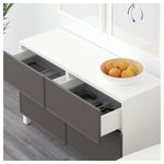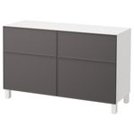 Благодаря доводчикам ящики и дверцы закрываются плавно и бесшумно. Ножки придают комбинации БЕСТО более легкий вид, поднимая модули на полом. Кроме того, это упрощает уборку. Два ящика и полки за дверцами обеспечат достаточно места для хранения.