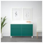 Комбинация для хранения с дверцами, ящиками БЕСТО, белый, Халлставик сине-зеленый (120x42x74 см)