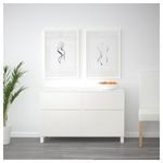 Благодаря доводчикам ящики и дверцы закрываются плавно и бесшумно. Ножки придают комбинации БЕСТО более легкий вид, поднимая модули на полом. Кроме того, это упрощает уборку. Два ящика и полки за дверцами обеспечат достаточно места для хранения.