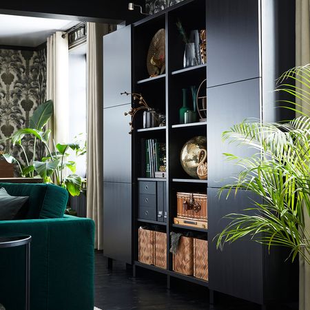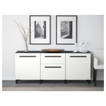 Закаленное стекло защищает верхнюю панель стеллажа БЕСТО и придает ему новый облик. Благодаря доводчикам ящики и дверцы закрываются плавно и бесшумно. Эту мебель необходимо крепить к стене с помощью прилагаемого стенного крепежа.