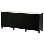 Комбинация для хранения с дверцами, ящиками БЕСТО, черно-коричневый, Сельсвикен глянцевый/черный (180x42x74 см)