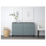 Благодаря доводчикам ящики и дверцы закрываются плавно и бесшумно. Ножки придают комбинации БЕСТО более легкий вид, поднимая модули на полом. Кроме того, это упрощает уборку. Два ящика и полки за дверцами обеспечат достаточно места для хранения.