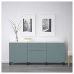 Благодаря доводчикам ящики и дверцы закрываются плавно и бесшумно. Ножки придают комбинации БЕСТО более легкий вид, поднимая модули на полом. Кроме того, это упрощает уборку. Два ящика и полки за дверцами обеспечат достаточно места для хранения.