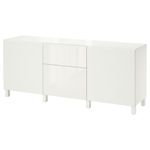 Комбинация для хранения с дверцами, ящиками БЕСТО, Лаксвикен белый, Сельсвикен глянцевый/белый (180x40x74 см)