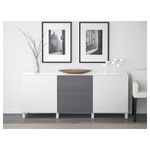 Комбинация для хранения с дверцами, ящиками БЕСТО, Лаксвикен белый, Сельсвикен глянцевый/серый (180x40x74 см)