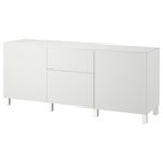 Благодаря доводчикам ящики и дверцы закрываются плавно и бесшумно. Ножки придают комбинации БЕСТО более легкий вид, поднимая модули на полом. Кроме того, это упрощает уборку. Два ящика и полки за дверцами обеспечат достаточно места для хранения.