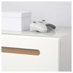 Закаленное стекло защищает верхнюю панель стеллажа БЕСТО и придает ему новый облик. Благодаря доводчикам ящики и дверцы закрываются плавно и бесшумно. Ножки придают комбинации БЕСТО более легкий вид, поднимая модули на полом.