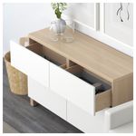 Благодаря доводчикам ящики и дверцы закрываются плавно и бесшумно. Ножки придают комбинации БЕСТО более легкий вид, поднимая модули на полом. Кроме того, это упрощает уборку. Два ящика и полки за дверцами обеспечат достаточно места для хранения.