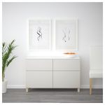 Благодаря доводчикам ящики и дверцы закрываются плавно и бесшумно. Ножки придают комбинации БЕСТО более легкий вид, поднимая модули на полом. Кроме того, это упрощает уборку. Два ящика и полки за дверцами обеспечат достаточно места для хранения.